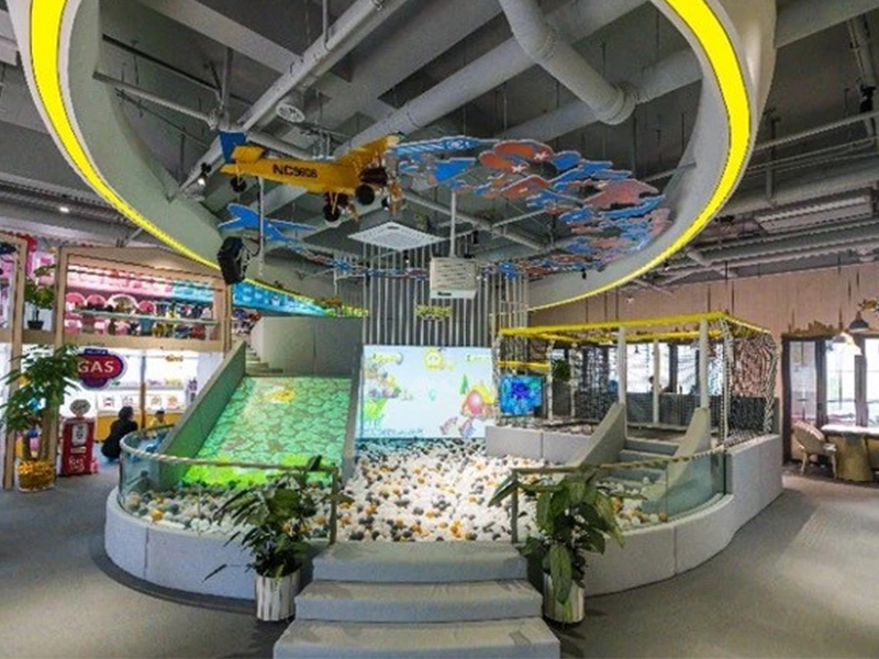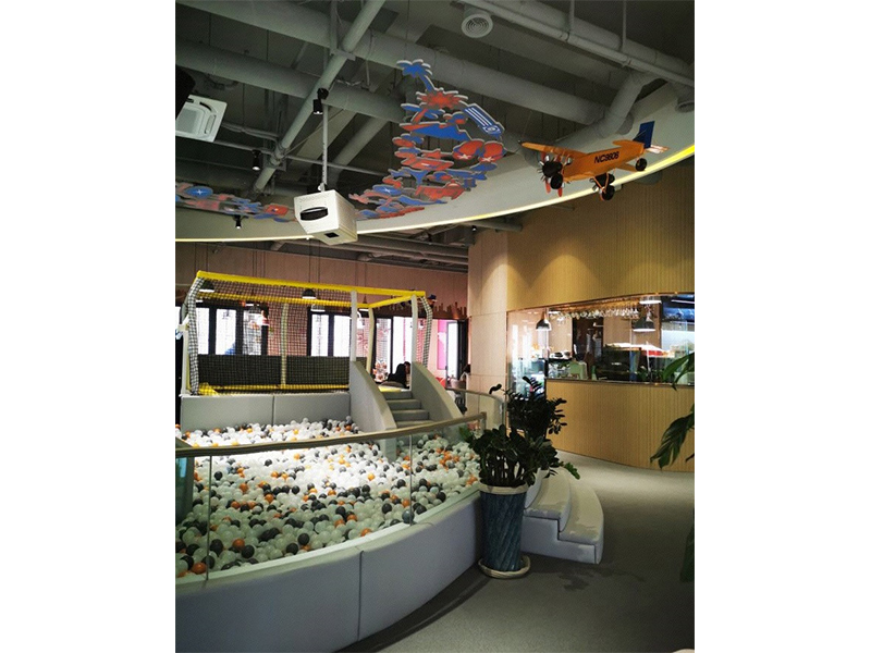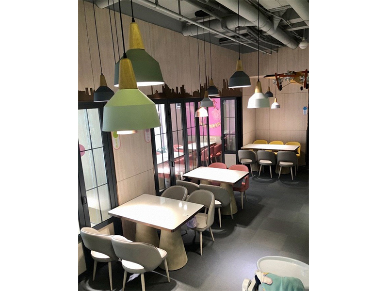 濟南森林象親子餐廳裝修施工完成效果圖以自然、溫馨為主題,門口有兩只小象在歡迎孩子們的到來,整個室內以自然色彩為主色調,里面還有一個小型的游樂場,能讓孩子們歡快的游玩。餐廳的墻上以卡通動漫為壁紙,激發(fā)孩子們的童真興趣。除此之外還有休息的地方,可以讓孩子們在童年的海洋里面暢游,在休息區(qū)還會有動畫片和玩具供孩子們游玩,餐廳的盤子、調味料盤瓶等一些也融合了卡通元素。