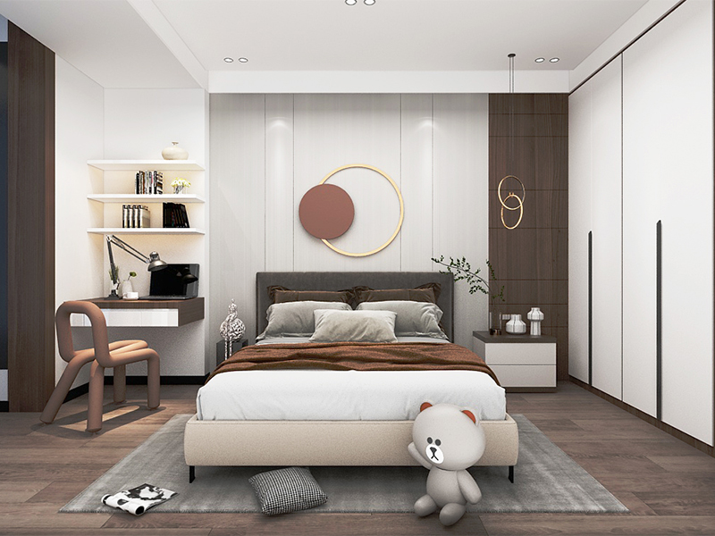 ??濟(jì)南阿達(dá)森裝飾為萬象東方設(shè)計的現(xiàn)代簡約風(fēng)裝修,以淺米色系打底,整面定制柜藏起雜亂的隱形收納巧思,正契合濟(jì)南寫字樓辦公室裝修里的高效空間利用邏輯;懸浮式電視柜的輕盈感