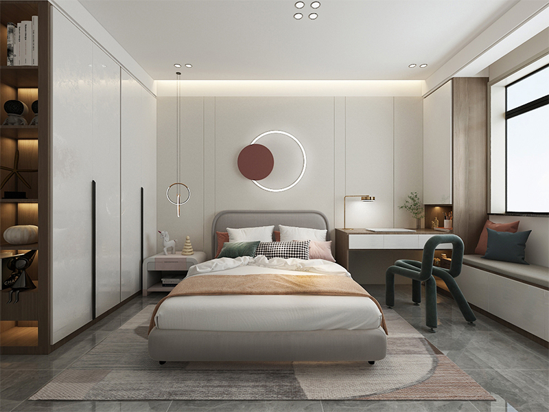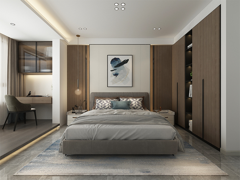 ??濟(jì)南阿達(dá)森裝飾為萬象東方設(shè)計(jì)的現(xiàn)代簡約風(fēng)裝修,以淺米色系打底,整面定制柜藏起雜亂的隱形收納巧思,正契合濟(jì)南寫字樓辦公室裝修里的高效空間利用邏輯;懸浮式電視柜的輕盈感