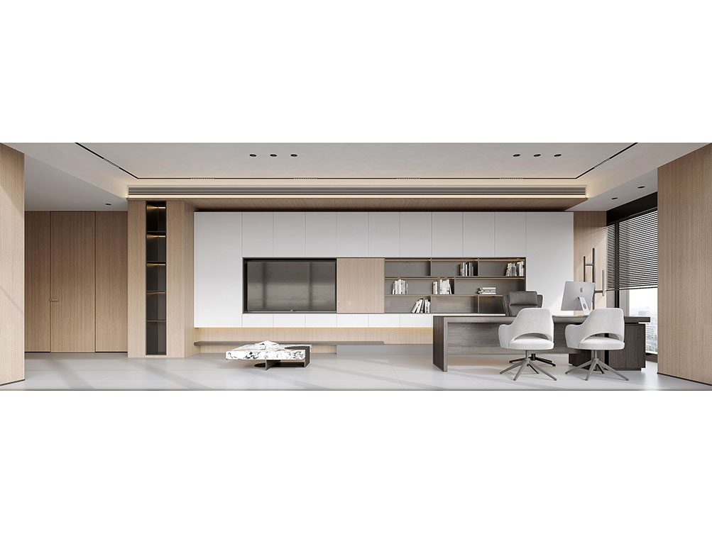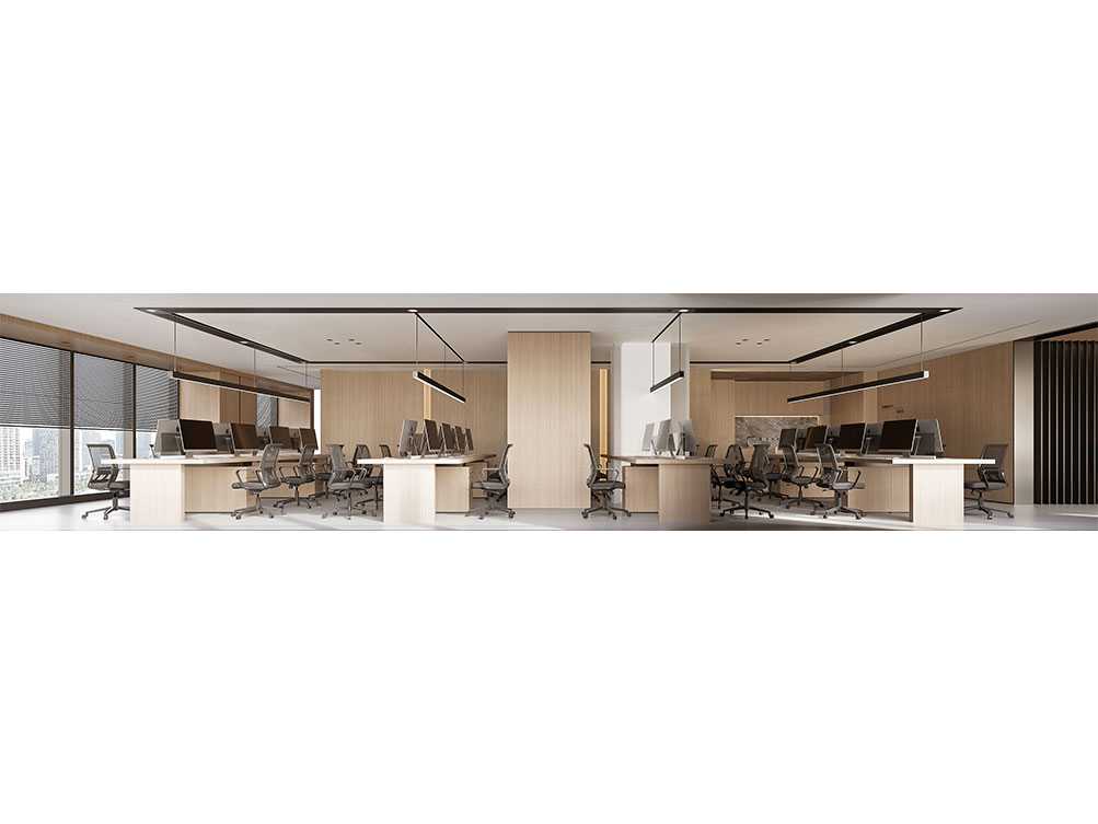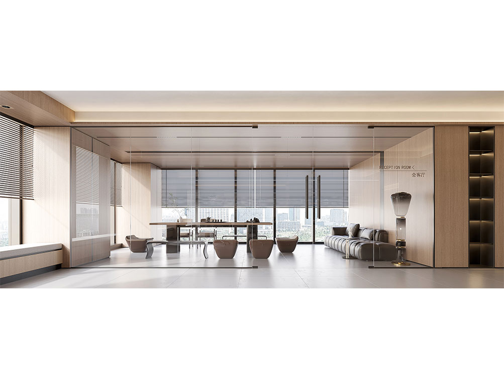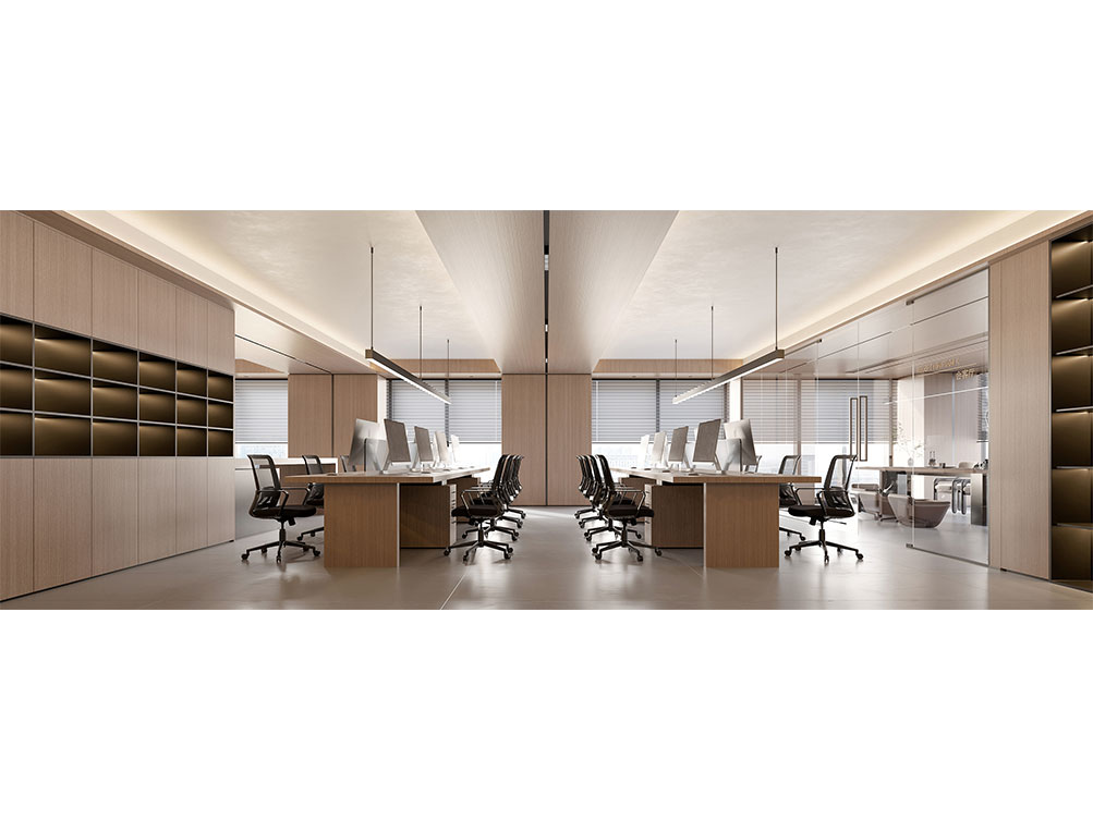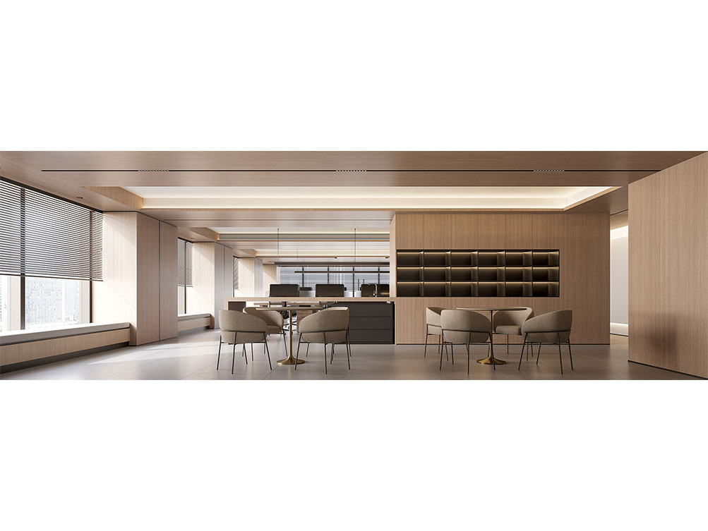 濟南奧克斯中心辦公室以溫潤木調(diào)為主線,搭配淺灰地面與嵌入式燈光,打造出濟南辦公室裝修中標志性的簡奢氛圍。開放式長桌適配團隊協(xié)作,玻璃隔斷既保障通透又劃分功能區(qū),嵌入式柜體兼顧收納與美學(xué),結(jié)合柔光設(shè)計,契合濟南商務(wù)空間 “實用 + 質(zhì)感” 的裝修需求,是濟南辦公室裝修中現(xiàn)代高效風(fēng)的典型呈現(xiàn)。