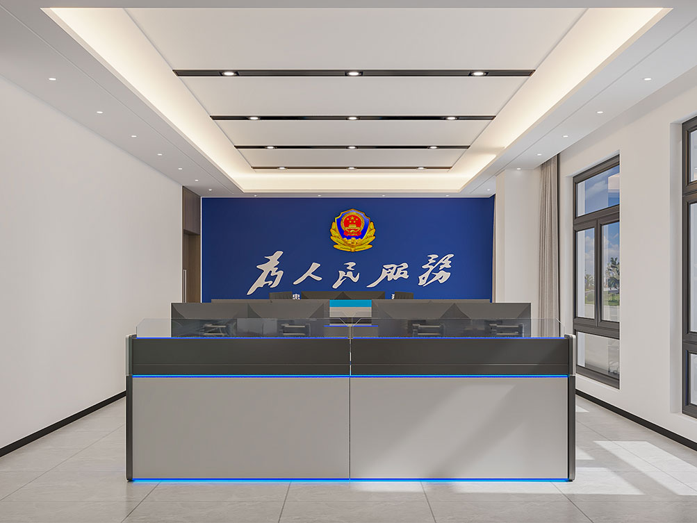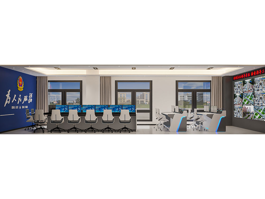 設(shè)計(jì)理念: 作為職能類辦公室裝修的標(biāo)桿案例,曹縣公安局指揮中心以簡潔大氣的現(xiàn)代風(fēng)格為主調(diào):深藍(lán)主墻面搭配為人民服務(wù)標(biāo)識,強(qiáng)化職能屬性;一體化操作臺 + 多屏設(shè)備適配指揮調(diào)度需求,淺灰地面與嵌入式燈光保障空間通透明亮,兼具專業(yè)性與實(shí)用性,是職能類辦公室裝修中功能優(yōu)先 + 形象適配的典型呈現(xiàn)。