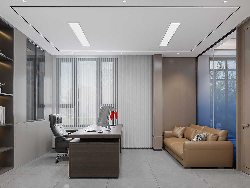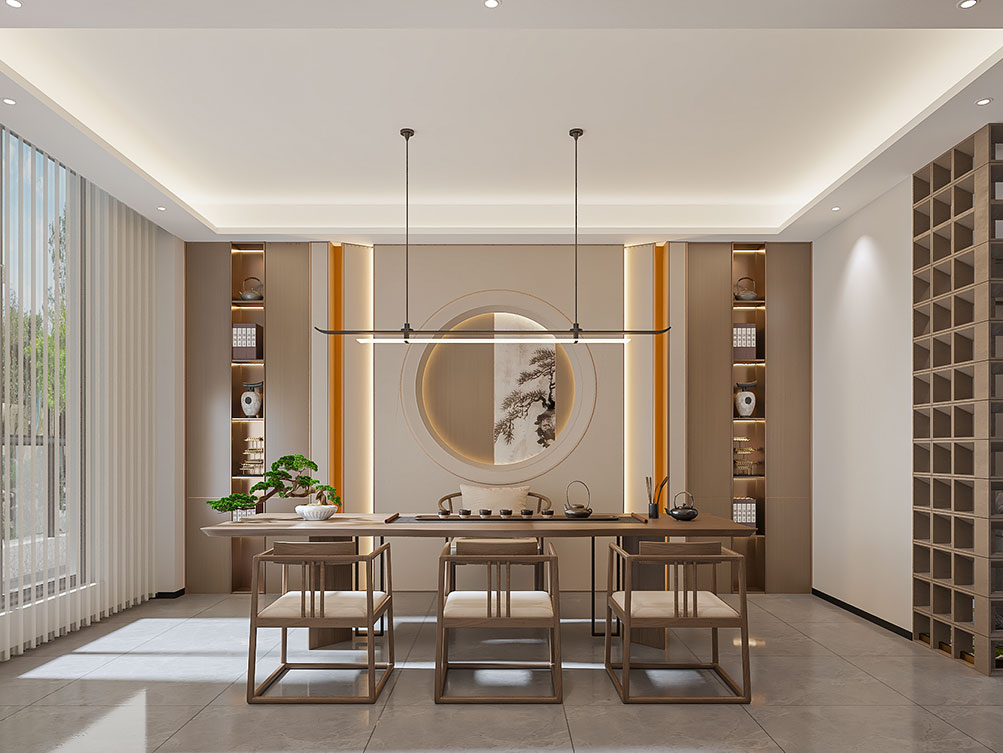 設(shè)計理念: 作為濟南辦公室裝修中文化感休閑空間的代表,華達茶歇室以新中式風格為主調(diào):原木茶桌搭配簡約禪意座椅,背景注入東方韻味,嵌入式燈帶與陳列柜烘托雅致氛圍,既契合濟南辦公室裝修商務(wù)接待的功能需求,也以溫潤質(zhì)感消解辦公疲憊,是濟南辦公空間中人文休閑區(qū)的優(yōu)質(zhì)范本。