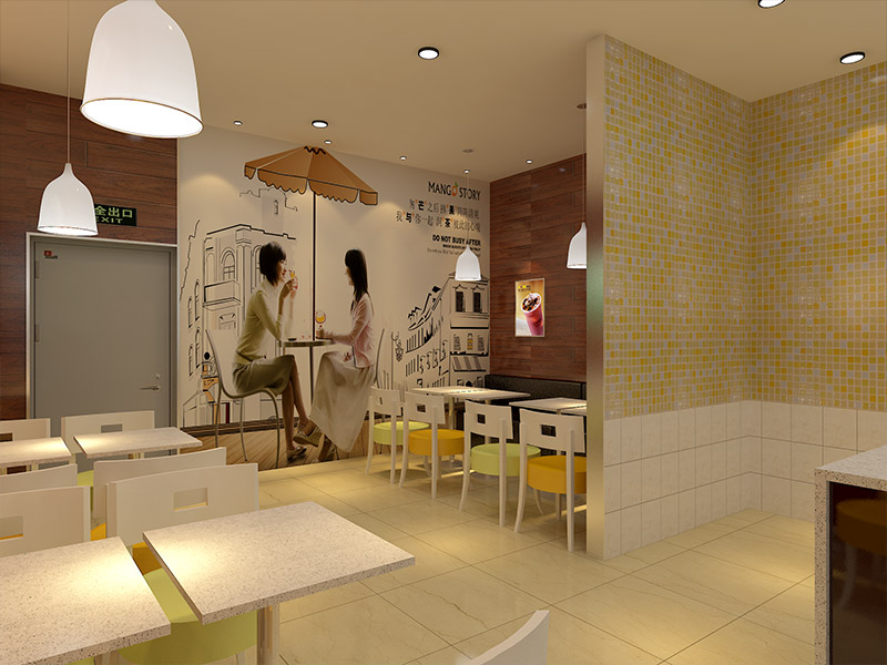 濟(jì)南奶茶店甜品店裝修設(shè)計-芒果主題飲吧裝修效果溫馨而甜蜜,以暖色調(diào)為主,營造出浪漫氛圍。店內(nèi)燈光柔和,照亮每一款精致甜品與飲品,令人垂涎欲滴。墻面裝飾甜蜜主題貼紙,增添趣味性。座位區(qū)布局舒適,適合朋友小聚或情侶約會,營造輕松愉悅的用餐體驗。整體設(shè)計既符合年輕人的審美,又充滿甜蜜幸福感。