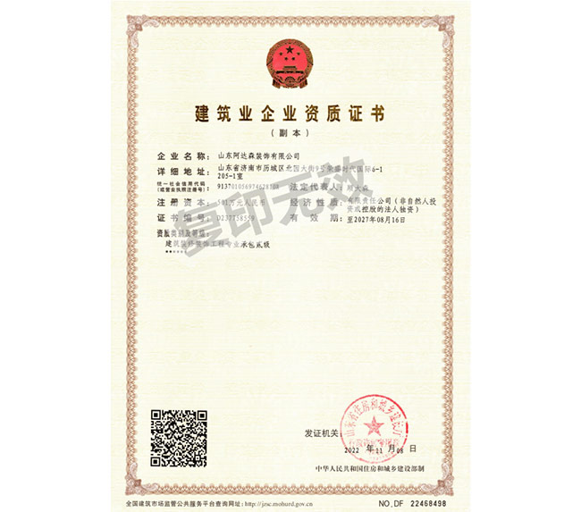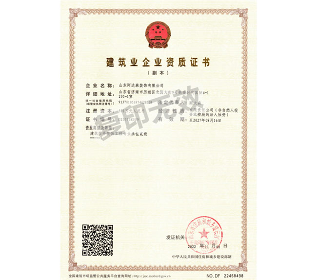 ? 山東阿達(dá)森裝飾有限公司是經(jīng)濟(jì)南市工商行政管理局正式批準(zhǔn)備案的正規(guī)裝飾企業(yè)。公司集辦公裝修設(shè)計(jì)、工程施工、建材配置、辦公家具配置于一體,涉及領(lǐng)域包括濟(jì)南店面裝修設(shè)計(jì)、寫(xiě)字樓裝修、辦公室裝修、連鎖酒店賓館裝飾裝修、主題餐廳裝修、酒吧KTV裝修、家庭裝修裝潢等。